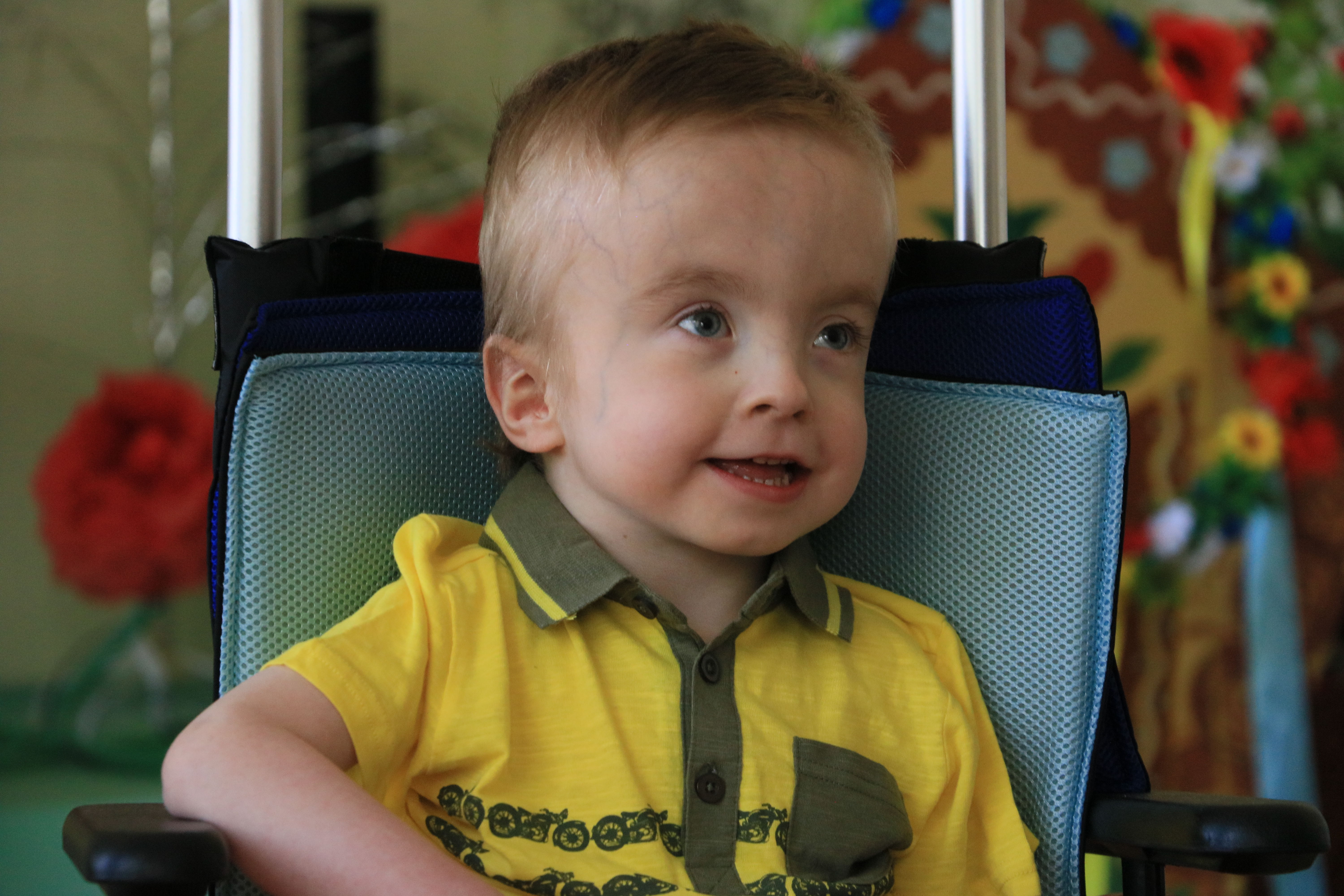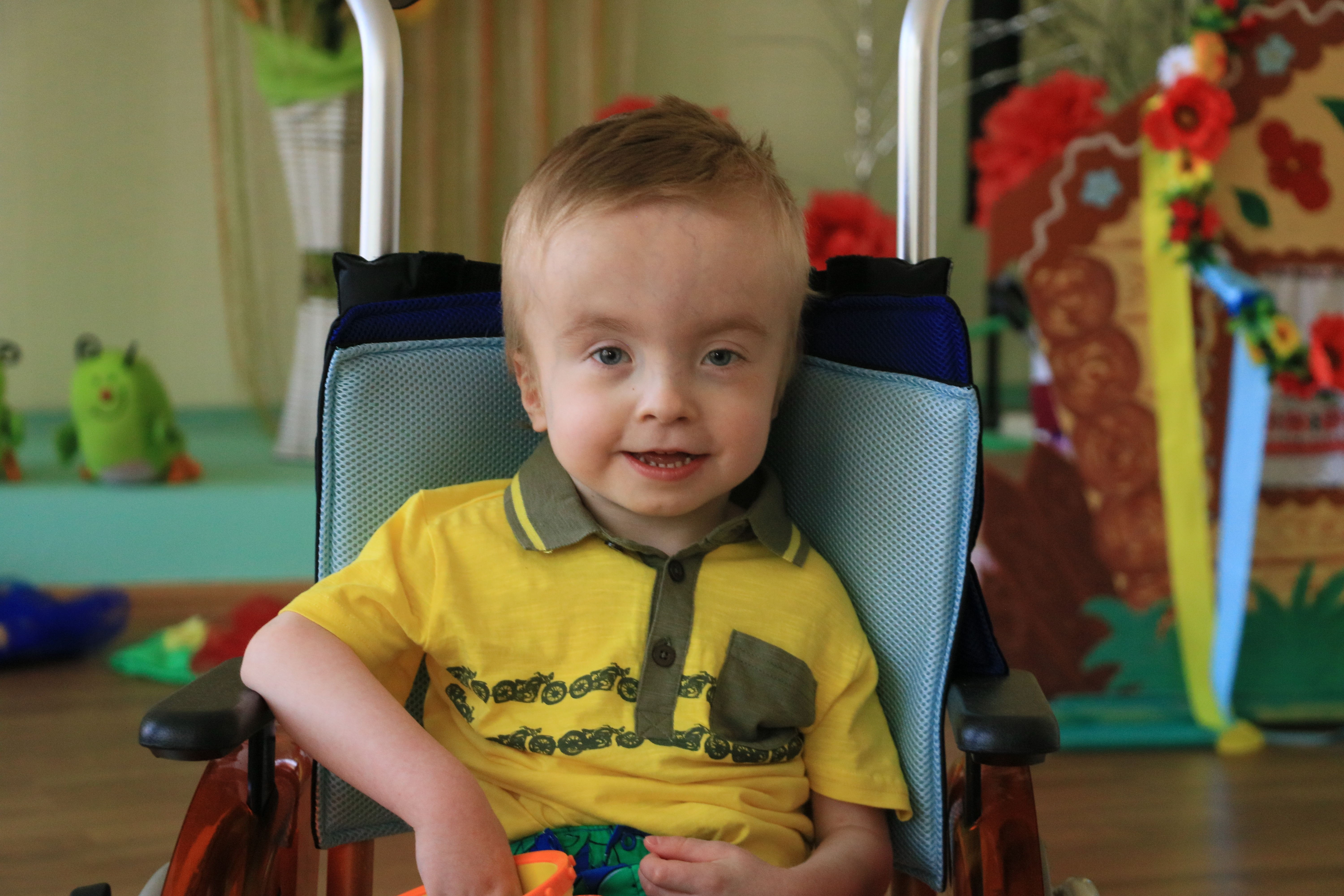 Олександр ‒ спокійний та усміхнений хлопчик. Він потребує особливої уваги та догляду. Сашкові дуже потрібна сім’я, яка підтримає його в розвитку та буде піклуватися про нього.