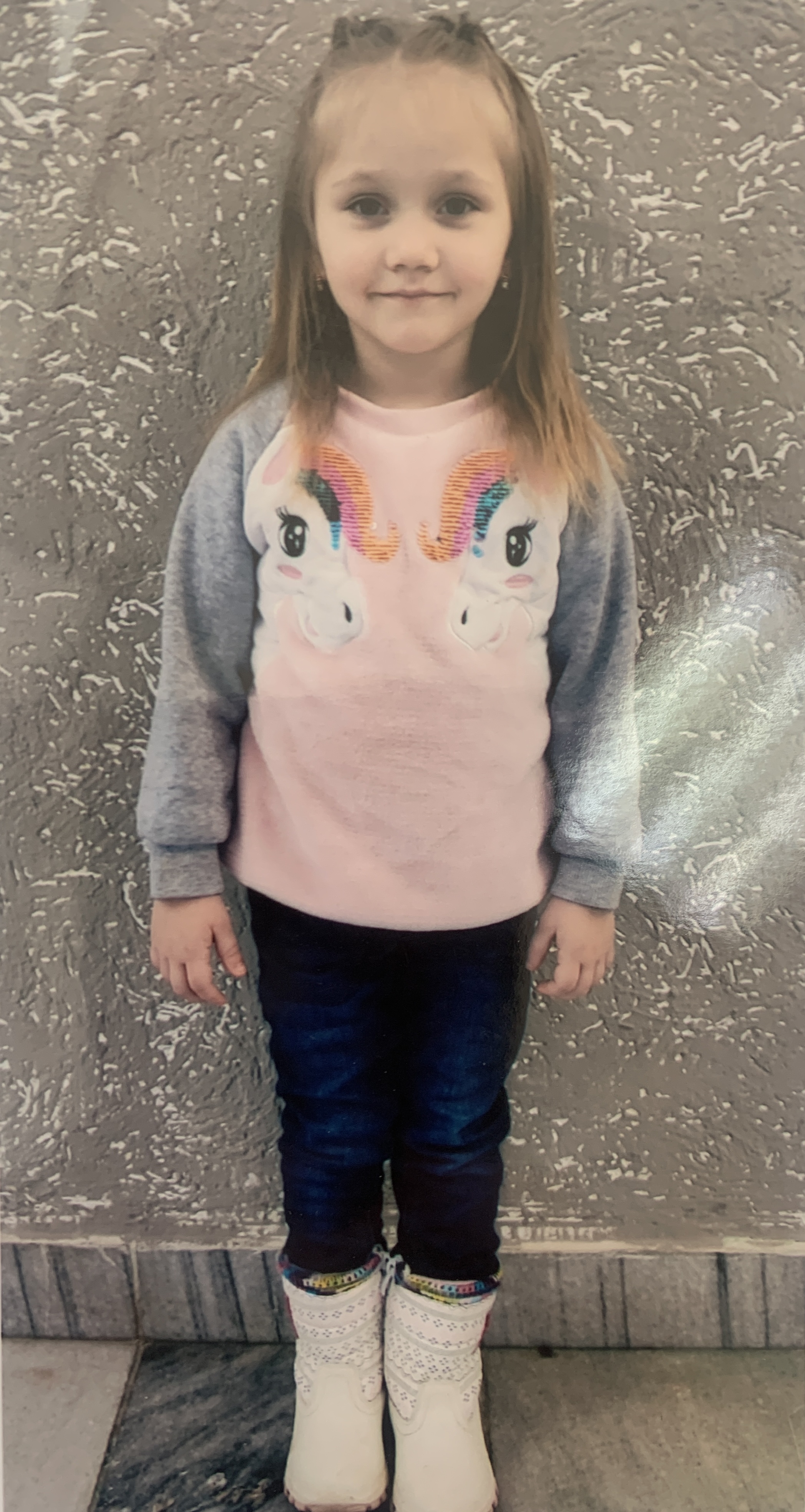 Аліна комунікабельна та легко йде на контакт з оточуючими. Дівчинка спокійна, доброзичлива. Легко орієнтується в навколишньому середовищі. Проводить прості аналогії з деякою допомогою дорослого. Може концентрувати увагу на тривалий час. Вік на фото - 8 років.