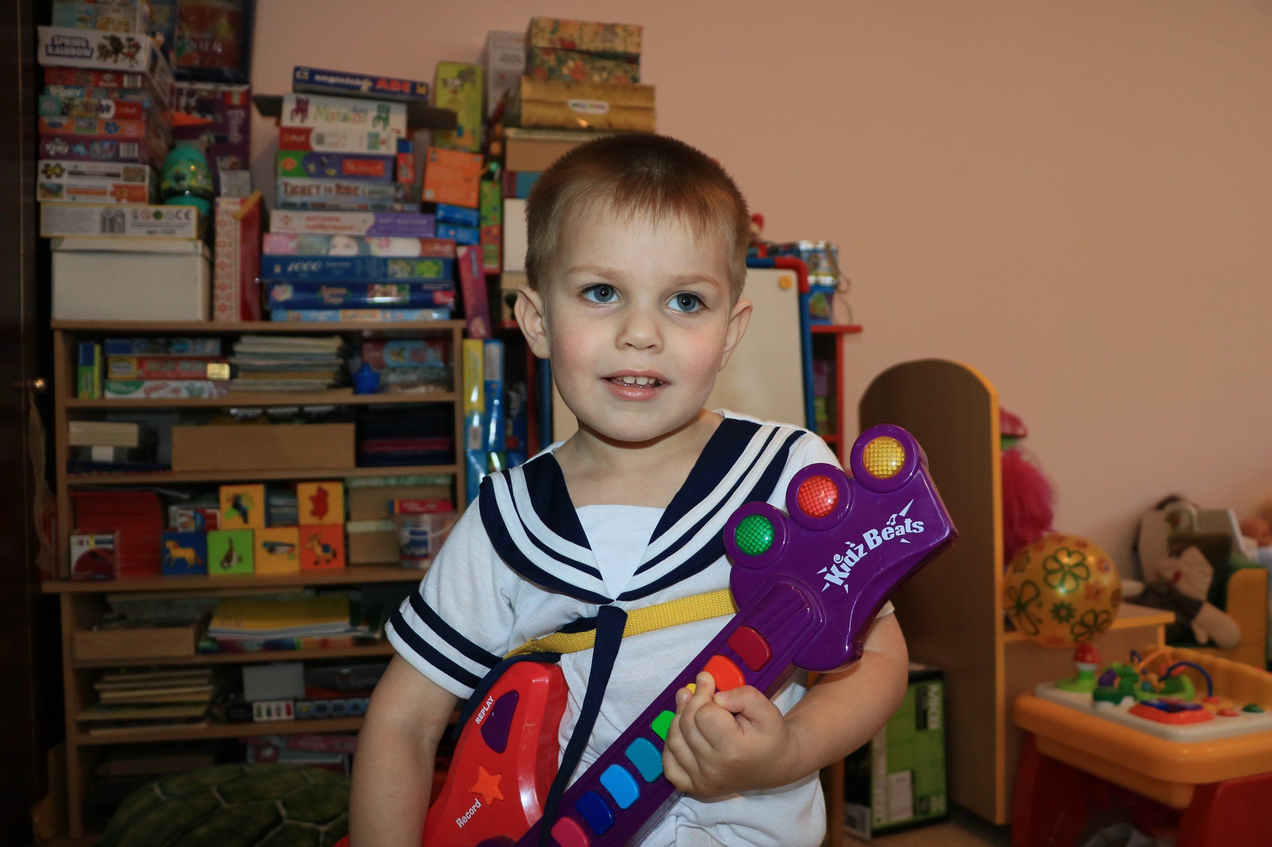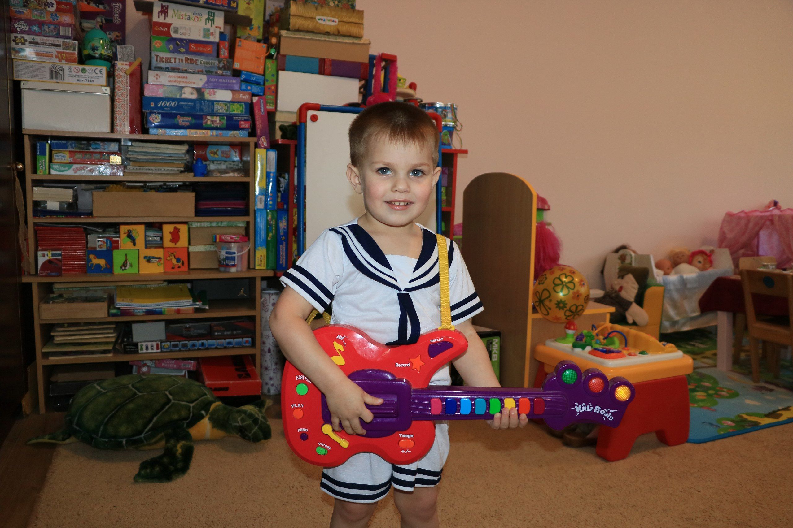 Єгор дуже розумний, активний та слухняний хлопчик. Любить складати пазли, кубики, гратися машинками. Вправно їздить на велосипеді та самокаті.