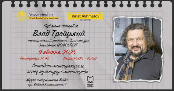 “Antidote to Manipulation through Culture and Art”: a public interview with theatre director Vlad Troitskyi will be held at the Museum of Civilian Voices founded by Rinat Akhmetov Foundation