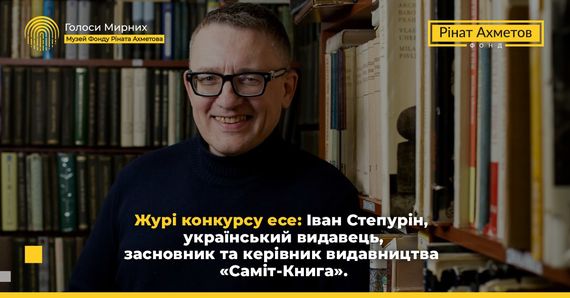 High school students and teachers from all over Ukraine are sending their works to the essay contest "1000 Days of War. My Way' organised by the Museum of Civilian Voices by Rinat Akhmetov Foundation. The essays are evaluated by an expert jury of people with extensive experience in various creative fields. Their participation will strengthen the credibility and objectivity in selecting the most talented essays and choosing the winners. One of the jury members is Ivan Stepurin, a well-known Ukrainian publisher, founder and head of the Samit-Knyga publishing house.