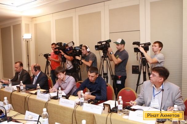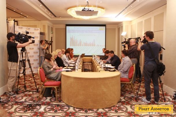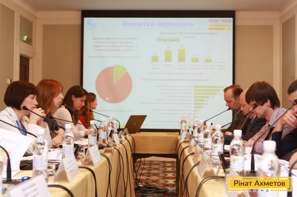 The research, presented during the roundtable meeting, was made by order of Rinat Akhmetov Humanitarian Center and Dopomozhemo TV from the 2nd till the 14th of June, 2015. 2,101 respondents older than 18 were polled through telephone and computer interviewing - CATI. Residents of 27 towns of Donetsk and Luhansk regions participated in the surveying.