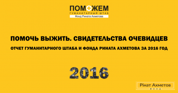 "The Humanitarian Center is a personal initiative of Rinat Akhmetov. He decided to help his compatriots to survive under the war conditions. Over the entire conflict period the Center became the largest humanitarian mission working in the East of Ukraine. This is a unique case in history, we have no evidence of similar facts, of such a large scale of assistance. We called our report for 2016 "The accounts of eyewitnesses". These are hundreds of thousands stories of people, who survive in war conditions, the stories of volunteers and everyone who went through this or doing it right now", – Rimma Fil, the Center's Coordinator, shared.