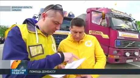Truck convoy with food products from Rinat Akhmetov Humanitarian Center is waiting for checkpoints near Maryinka to open