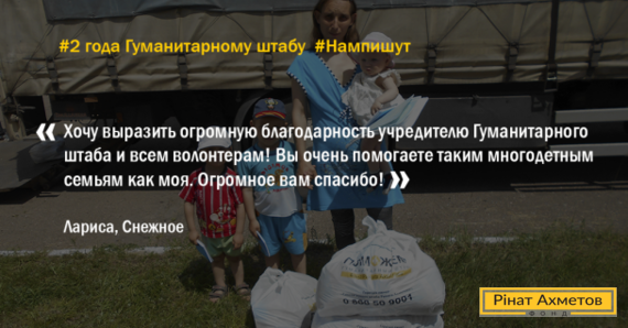 2 роки Гуманітарному штабу Ахметова: подяка зі Сніжного