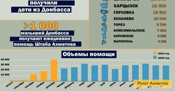 За січень 2015 року Гуманітарний штаб Ріната Ахметова роздав 25 927 дитячих наборів для сімей із дітьми від 0 до 2-х років, які проживають як у зоні проведення АТО, так і на підконтрольних українській влади територіях, і в містах на лінії вогню.