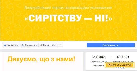 41 000 підписників має сторінка програми «Сирітству – ні!» Фонду Ріната Ахметова у Facebook