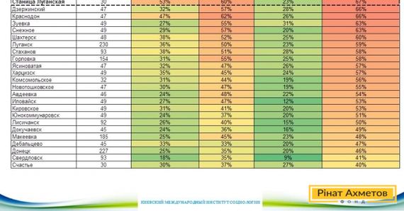 Із продуктами найскладніше у Станиці Луганській — про це заявила половина жителів. Ту ж проблему відчувають від 40% до 43% жителів Єнакієвого, Алчевська та Ровеньків.