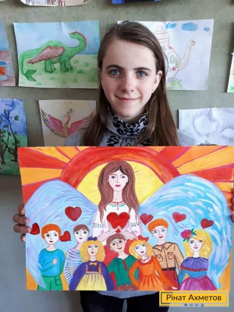 Ще одного переможця вибрало журі, до складу якого увійшли представники Фонду Ріната Ахметова. Це 13-річна Людмила, яка виховується в дитячому будинку сімейного типу. Дівчинка намалювала маму в образі ангела, який захищає своїми крилами дітей і кожній з них дарує своє серце та любов.