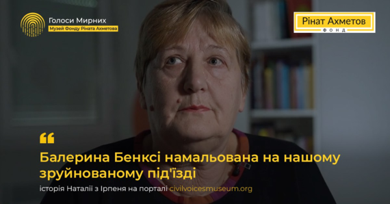 «Балерина Бенксі намальована на нашому зруйнованому під'їзді»: Наталія з Ірпеня довірила свою історію Музею «Голоси Мирних» Фонду Ріната Ахметова