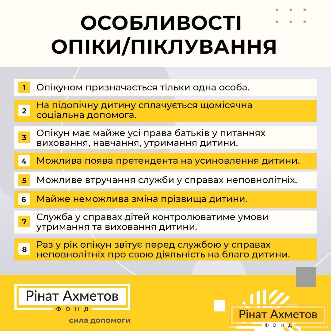 Особливості опіки/піклування