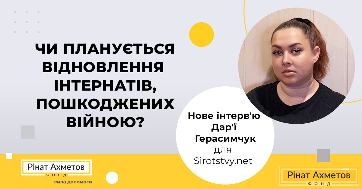 Усі ми багато разів чули і від Президента України, і від членів його команди, і від міжнародних діячів та лідерів інших країн про те, як, хто і чим готовий допомогти нам у відбудові нашої країни. І в питаннях забезпечення та захисту прав дітей це не може, не має і не буде стосуватися лише відновлення чи не відновлення інтернатних закладів. Було пошкоджено тисячі, а повністю зруйновано сотні шкіл, садочків та інших навчальних закладів, закладів медицини. Ми маємо відбудувати це все. А головне – ми маємо не лише відбудувати будівлі, а й себе. Українці не будуть такими, як були, вже ніколи. А отже, і система, яку творитимуть нові інші українці, буде новою та іншою.