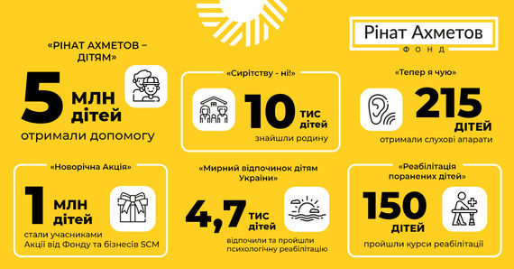 Допомагає Фонд Ріната Ахметова і дітям, які постраждали від війни фізично — завдяки проєкту «Реабілітація поранених дітей» вже 150 хлопців та дівчат пройшли відповідний курс у найкращих санаторіях України.