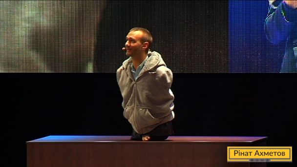 На сцену НСК «Олімпійського» Нік Вуйчич виїхав в інвалідному візку. Але своїм натхненням і оптимізмом він мотивував усіх присутніх у залі на подальше життя навіть у важкий для країни час.