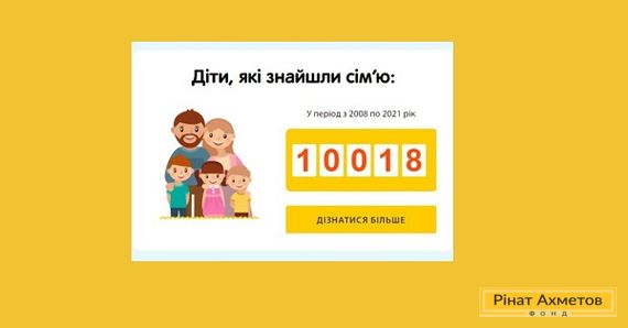 Програма “Рінат Ахметов - Дітям. Сирітству - ні!” з радістю повідомляє, що лічильник порталу Sirotstvy.net, якій рахує кількість усиновлених дітей, наразі має п’ятизначне число - 10 018! А це означає, що вже більше 10 тисяч дітей, анкети яких були на порталі, отримали шанс змінити власне життя на краще.