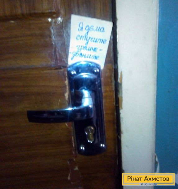 «Я вдома! Стукайте голосніше, телефонуйте». Цією записочкою 89-річна Євдокія Іванівна нам повідомляла — я вас чекаю. Наступна записочка на під’їзді: «Не закривайте двері, чекаємо гуманітарку». Піднімаємося. Дзвонимо. Валентина Тарасівна довго йде до дверей квартири. На свої вісімдесят, ну, ніяк не виглядає. Усміхнена, з жартами-примовками… Вік видають тільки паличка і фраза: «сідати не буду, якщо сяду, то вже не встану, я потім до ліжка доповзу і вже ляжу», — розповідає Лариса Лісняк.