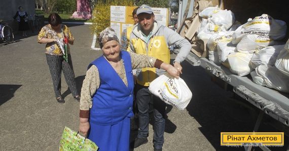 – Але це нічого, головне, що ми з донькою – вона переселенка з Дебальцевого та живе зі мною – не постраждали. Живі, й добре. Отримуємо ось продуктові набори від Ріната Ахметова, тому не голодуємо. Дякуємо йому за допомогу, – каже пенсіонерка.