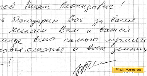«Бажаємо вам і вашій команді всього найкращого», – йдеться в листі.