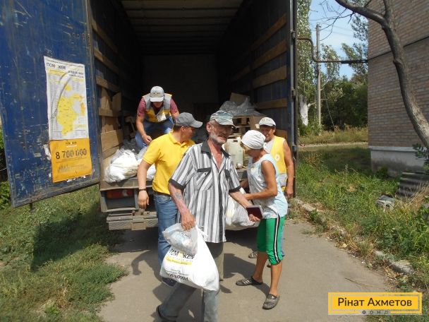 За весь час роботи мобільні бригади Штабу Ріната Ахметова відвідали 425 населених пунктів і видали 189 тисяч продуктових наборів. Станом на 23 серпня, Гуманітарна штаб видав 9 млн 378 тис. наборів виживання з обох боків лінії зіткнення.