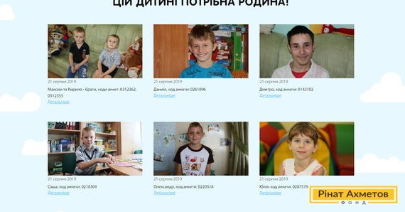 Усі діти, чиї анкети розміщені на порталі «Сирітству – ні!» Фонду Ріната Ахметова, мріють про маму й тата, з якими відчують себе щасливими та бажаними, пізнають тепло, любов, щирість. Якщо вам бракує щастя, шукайте його/її обличчя на світлинах, представлених у базі порталу. Ваша дитина дуже чекає саме Вас!