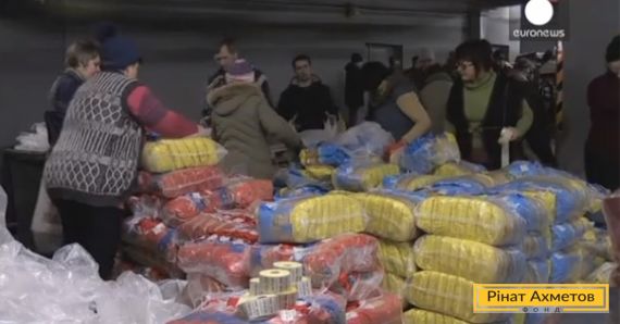 Телеканал «Євроньюз» у відеосюжеті за 5.02 розповідає про те, що військові дії на південному сході України, за даними ООН, забрали життя 5300 осіб. Водночас, «Донбас Арена» — футбольний стадіон у Донецьку, побудований 2009-го, — тепер перетворився на центр роздавання гуманітарної допомоги. Сюди фонд українського мільярдера Ріната Ахметова регулярно направляє конвої з продовольством і медикаментами», — повідомляє телеканал.