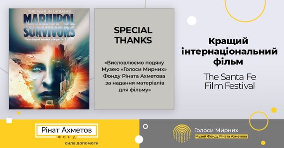 У місті Санта Фе, що у Сполучених Штатах, відбувся щорічний кінофестиваль The Santa Fe Film Festival. Переможцем у категорії «Кращий інтернаціональний фільм» стала короткометражна стрічка Mariupol Survivors («Ті, хто вижив у Маріуполі»), до якої ввійшли фрагменти трьох історій з архіву Музею «Голоси Мирних» Фонду Ріната Ахметова.