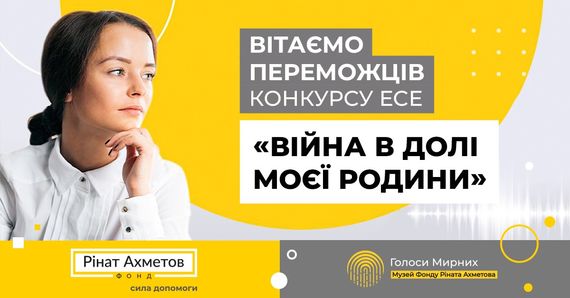 Фонд Ріната Ахметова оголошує переможців конкурсу есе «Війна в долі моєї родини», який було реалізовано в рамках проєкту Музей «Голоси Мирних. Діти».