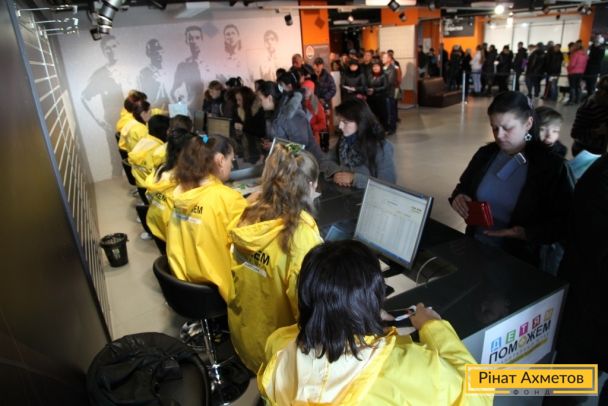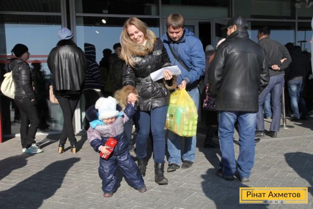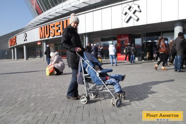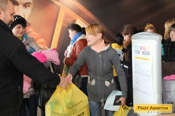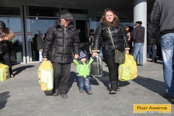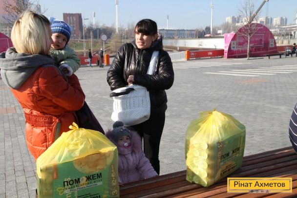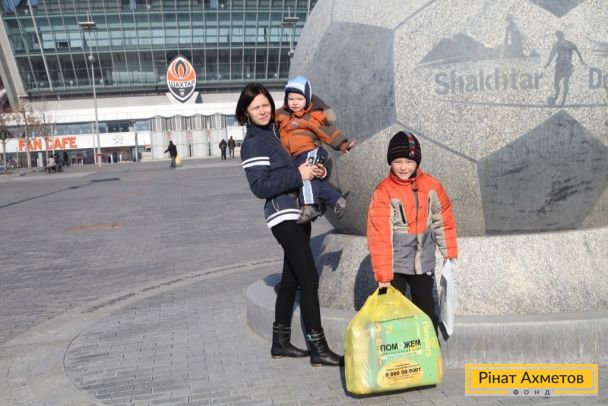 На «Донбас Арені» триває роздавання гуманітарної допомоги для дітей від Штабу Ріната Ахметова