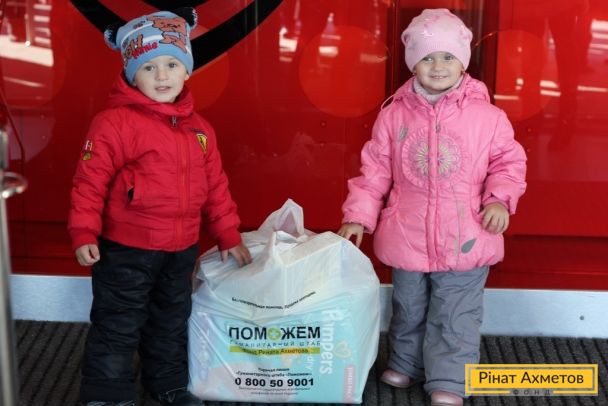 ФОТО. На «Донбас Арені» триває видавання «дитячих наборів» від проекту «Допоможемо дітям»