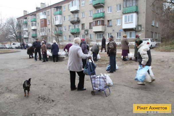 ФОТО. Отримання гуманітарної допомоги жителями Будьонівського району Донецька. 14.11.2014
