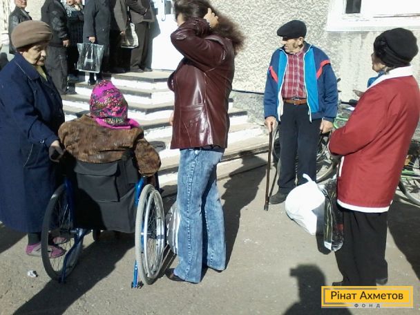 ФОТО. Роздавання гуманітарної допомоги у Жданівці Донецької області.