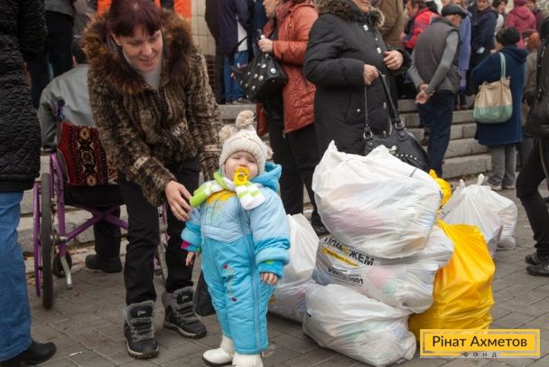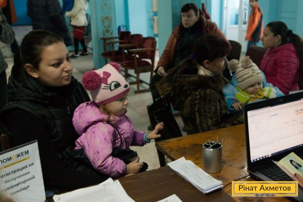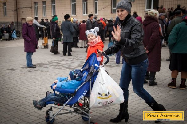ФОТО. Видача гуманітарної допомоги жителям Петровського району Донецька. 22.10.2014