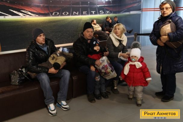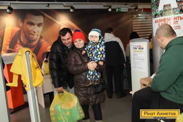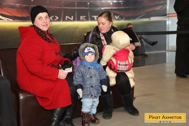 ФОТО. Видавання «дитячих наборів» від Гуманітарного штабу Ахметова на «Донбас Арені». 18.11.2014