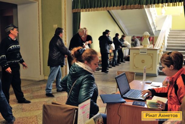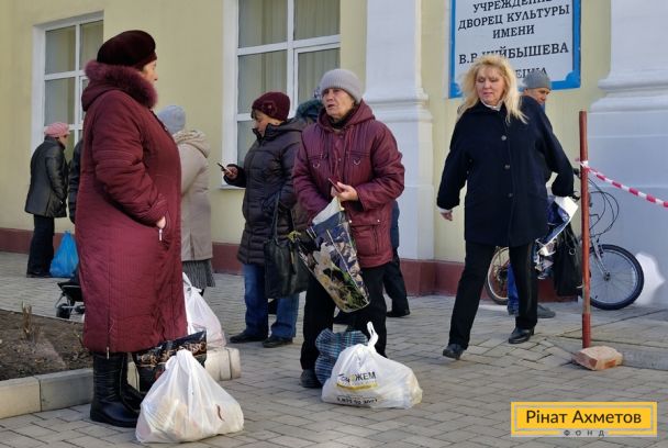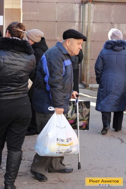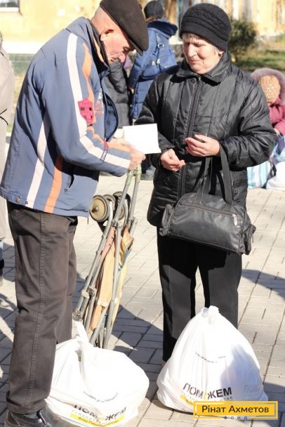 ФОТО. Видавання гуманітарної допомоги жителям Пролетарського й Куйбишевського районів Донецька
