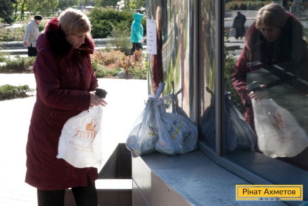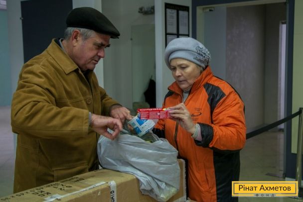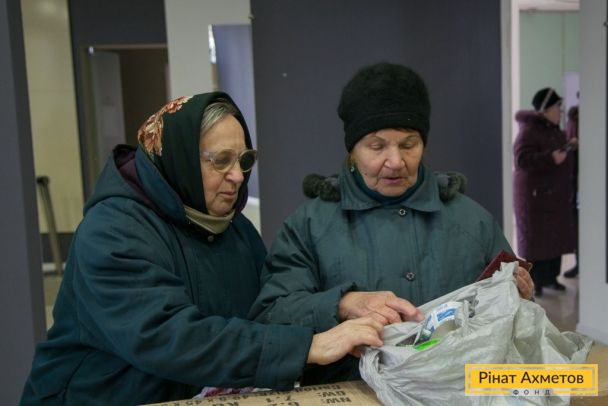 ФОТО. Видавання гуманітарної допомоги жителям Ворошиловського та Київського районів Донецька
