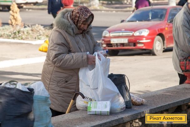 Жителі Будьонівського і Пролетарського районів Донецька отримують гуманітарну допомогу від Штабу Ахметова. 6.11.2014