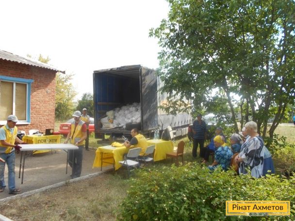 Подібне мобільне доставляння продуктів від Штабу Ахметова дозволяє надати допомогу людям у віддалених селах і маленьких містах, особливо на лінії зіткнення, де не завжди є можливість відкрити постійний пункт видавання.
