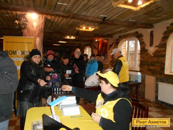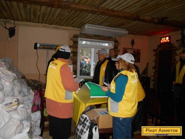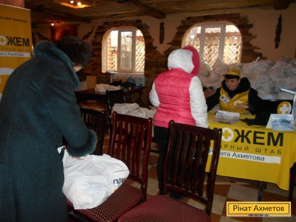 Із запитом про допомогу мирним жителям Сартани до Штабу Ахметова звернулися місцеві влади. Їхні представники надали приміщення для роботи волонтерів, підготували списки жителів, допомагали координувати чергу під час видавання.