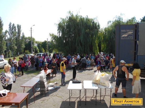Гуманітарний штаб Ріната Ахметова продовжує забезпечувати наборами виживання мирних жителів віддалених сіл і маленьких містечок Донецької області на лінії зіткнення й міст на підконтрольній Україні території Донбасу, де проживають переселенці.