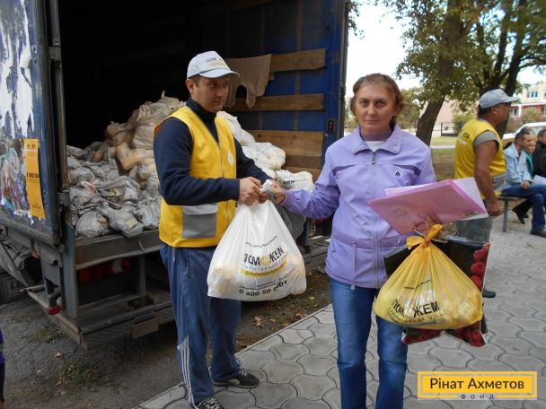 1120 продуктових, дитячих і гігієнічних наборів видала мобільна бригада Штабу Ріната Ахметова жителям Волноваського району. Допомогу отримали місцеві жителі й переселенці в селах Бердянське, Сопине, Приморське, Піонерське, Лебединське.