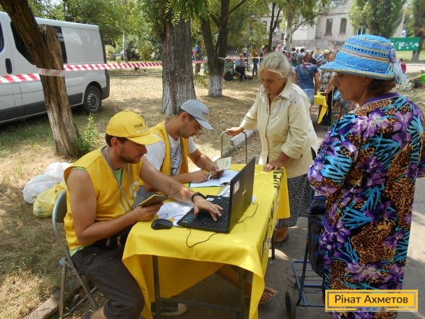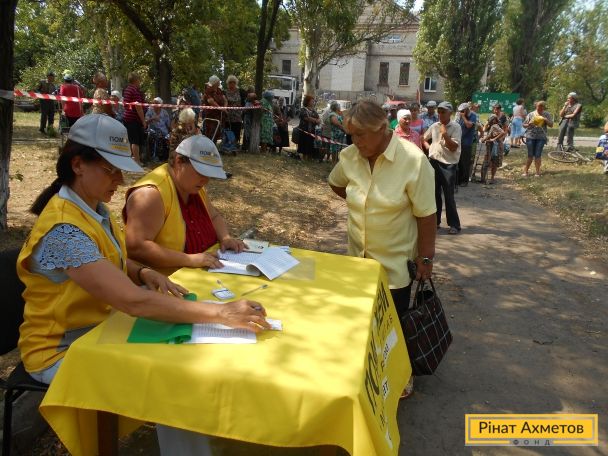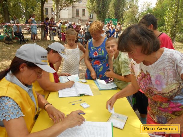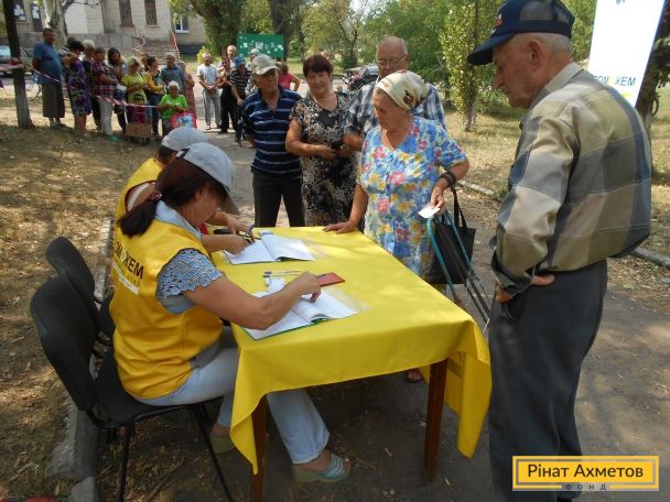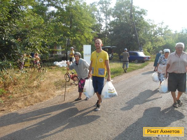 Бригада мобільного видавання Штабу Ріната Ахметова доставила і видала гуманітарну допомогу 735 мирних жителях і переселенцям, які проживають у селах Уманське, Орлівка, Тоненьке, Ласточкине, Верхньоторецьке Ясинуватського району. Продуктові набори отримали найбільш соціально незахищені категорії населення.