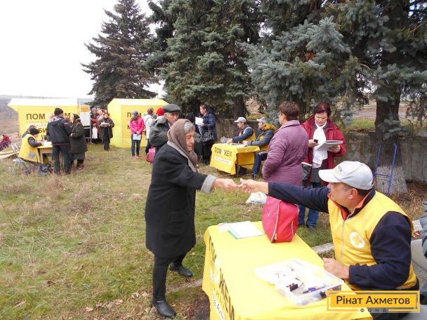 1004 місцевих жителя й переселенця у Волноваському районі Донецької області, на лінії зіткнення, отримали допомогу від мобільної бригади Штабу Ріната Ахметова. Продуктові набори видані пенсіонерам, інвалідам, матерям, що годують і сім’ям із дітьми до 35 місяців, а також іншим соціально незахищеним категоріям у селах Староігнатівка, Чермалик, Орловка і Федорівка.