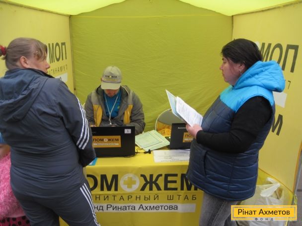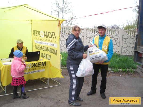 Мобільна бригада Штабу Ріната Ахметова доставила і видала продуктові набори 496 переселенцям у Великій Новосілці Донецької області. Допомогу отримали найбільш соціально незахищені категорії: пенсіонери, багатодітні сім’ї, батьки-одинаки, інваліди. З них 91 набір отримали сім’ї з малюками до 35 місяців.