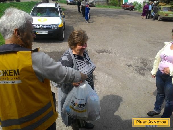 Мобільна бригада Штабу Ріната Ахметова видала допомогу мирним жителям сіл Новоіванівка, Павлівське, Ленінське, Ольгинське, Кисилівка, Новоєланчик Амвросіївського району Донецької області. 260 дорослих і дитячих продуктових наборів доставили найбільш соціально вразливим категоріям місцевих жителів.