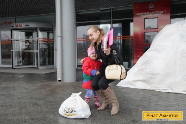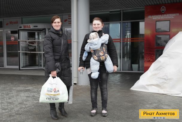 Діти Донецька отримують дитяче харчування від Штабу Ахметова на «Донбас Арені», 2 квітня
