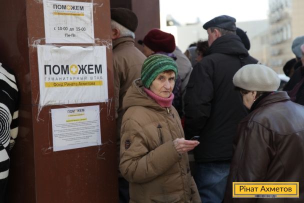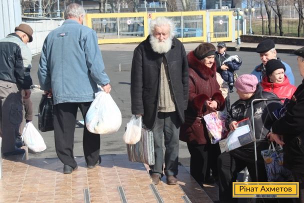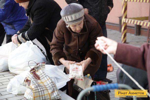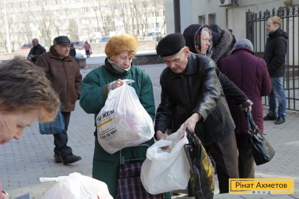 ФОТОЗВІТ. Літні люди Київського й Калінінського районів Донецька отримують набори виживання від Штабу Ахметова, 3 квітня