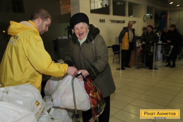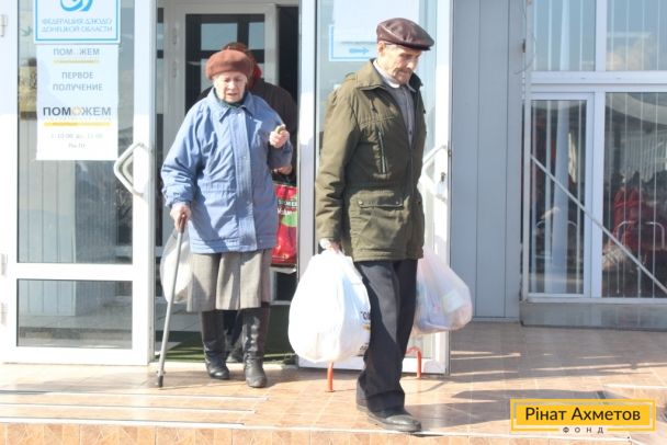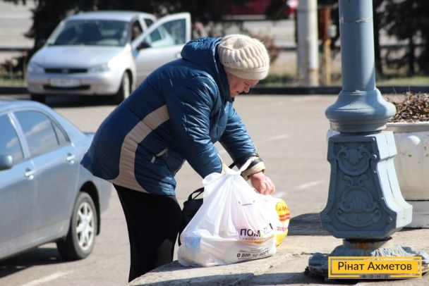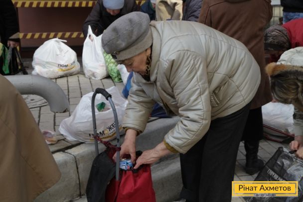 Літні люди Київського й Калінінського районів Донецька отримують набори виживання від Штабу Ахметова, 3 квітня