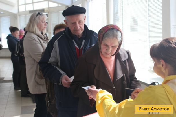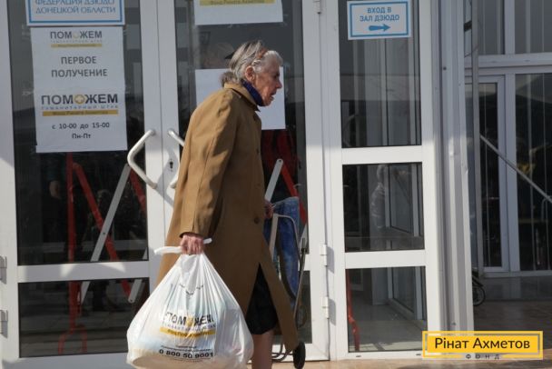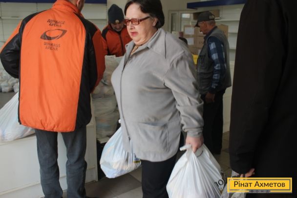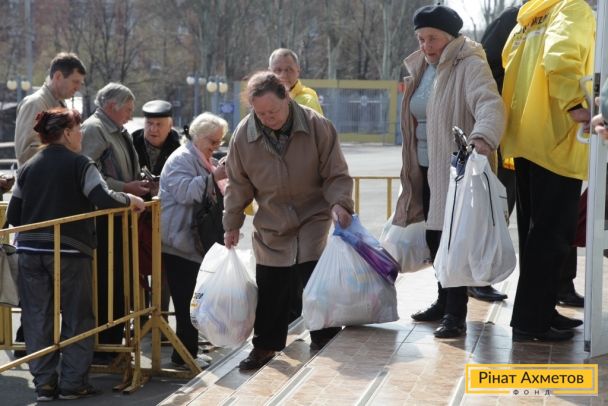 ФОТОЗВІТ. Мирні жителі трьох районів Донецька отримують набори виживання від Штабу Ріната Ахметова, 13 квітня