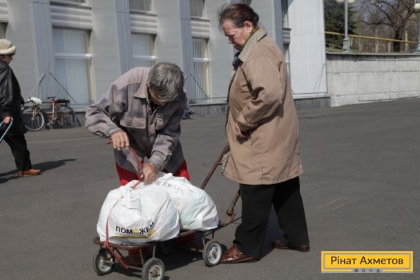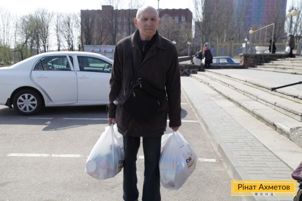Мирні жителі трьох районів Донецька отримують набори виживання від Штабу Ріната Ахметова, 13 квітня