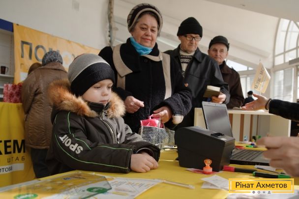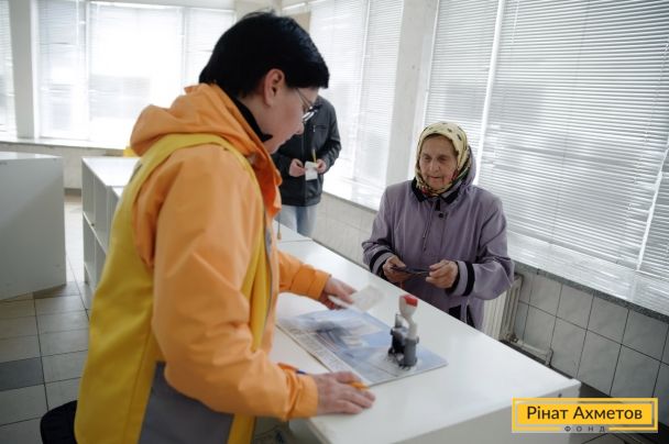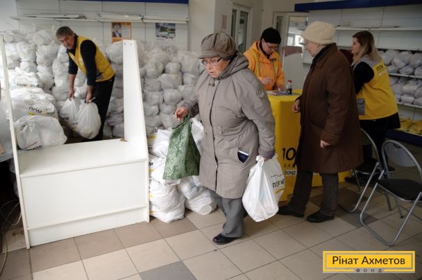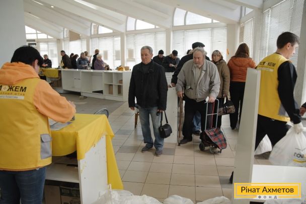 ФОТОЗВІТ. Видача гумдопомоги в Будьонівському та Ленінському районах Донецька 1 квітня